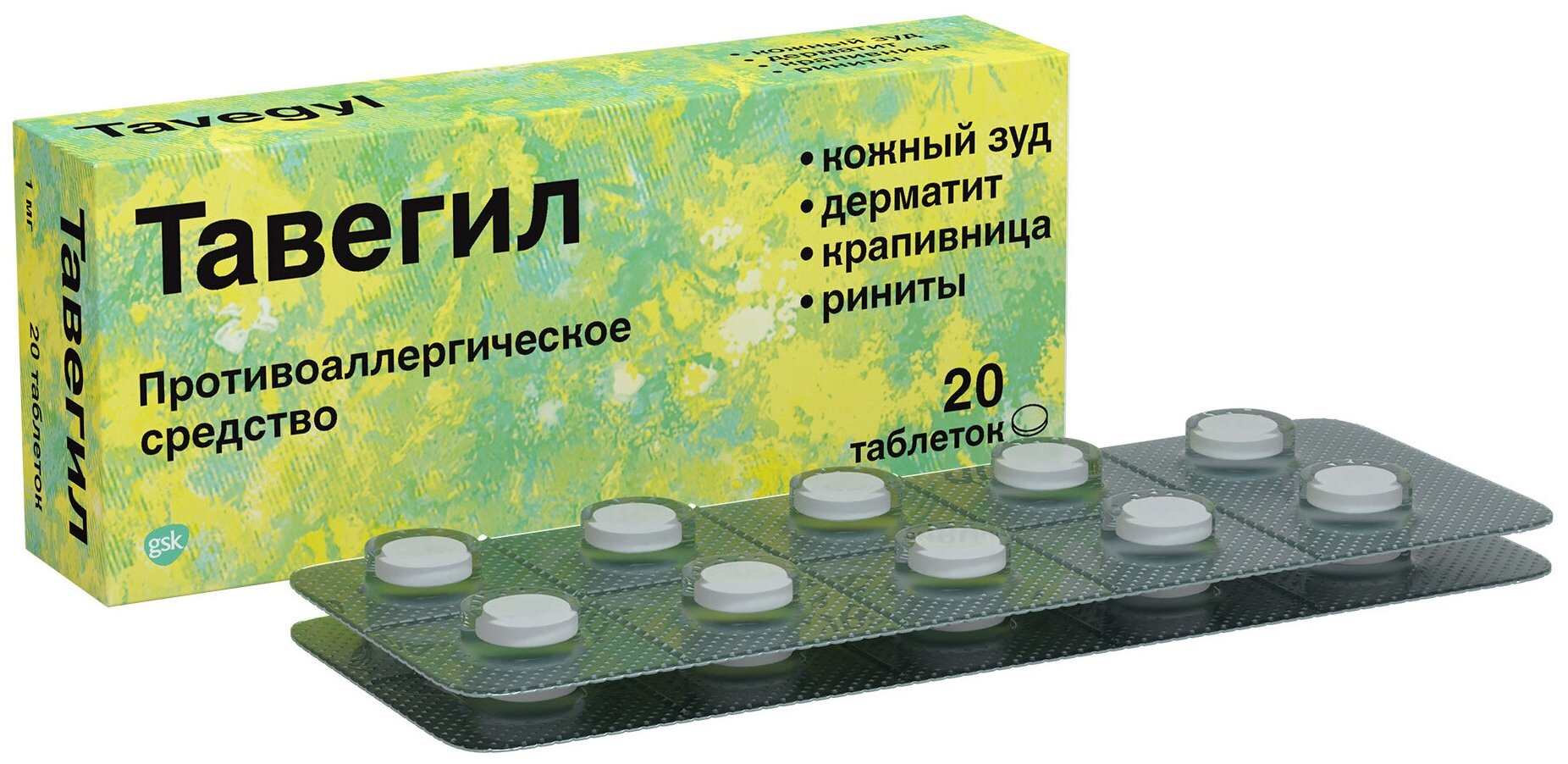 Тавегил 1мг №20 таблетки