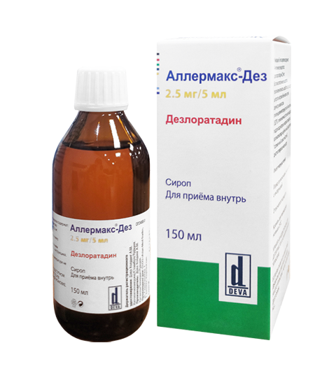 Дети от 1 до 5 лет: 2,5 мл Аллермакс®-Дез один раз в день (1,25 мг).