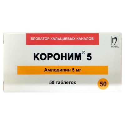 КОРОНИМ – является блокатором кальциевого канала продолжительного действия, который ингибирует трансмембранный перенос ионов кальция в гладкую мускулатуру сосудов и кардиомиоциты. Амлодипин избирательно блокирует перенос ионов кальция в клетки. Больше воздействует на гладкие мышцы сосудов, чем на кардиомиоциты, вследствие чего, не оказывает значимого влияния на сердечный выброс и на ударный объем. Амлодипин не оказывает влияния на уровень кальция в плазме крови. Как периферический вазодилататор, амлодипин влияет непосредственно на гладкие мышцы сосудов, вследствие чего уменьшается сопротивление периферических сосудов и снижается артериальное давление, вследствие чего потребность кардиомиоцитов в кислороде снижается. Антигипертензивный эффект сохраняется примерно 24 часа. Амлодипин не изменяет функцию синоатриального узла или атриовентрикулярную проводимость. Несмотря на примерно одинаковые изменения диастолического давления у молодых и пожилых пациентов, систолическое давление значительнее снижалось у пожилых.