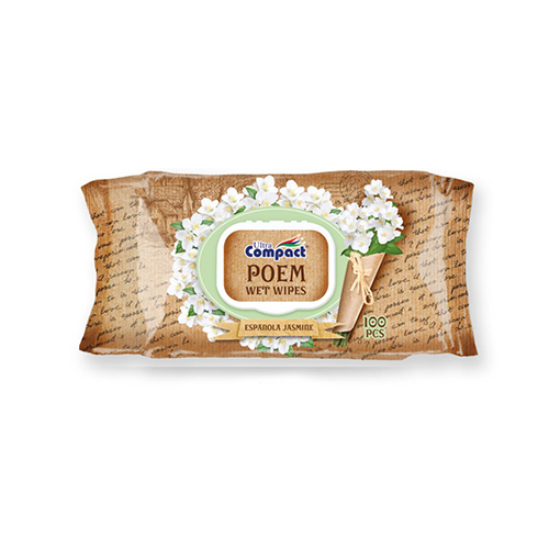 Влажные салфетки Ultra Compact Poem, известные наряду с качеством, красотой и изысканностью, привлекают внимание броской упаковкой с видом крафт-бумаги.
