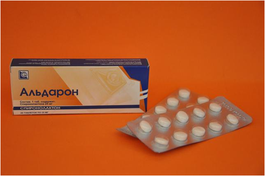 Одновременное применение Альдарона® с другими калийсберегающими диуретиками, ингибиторами АПФ, антагонистами ангиотензина II, блокаторами альдостерона, гепарином, низкомолекулярными гепаринами или другими препаратами, вызывающими гиперкалиемию, или с диетой, богатой калием, или заменителями соли, содержащими калий, может привести к серьезной гиперкалиемии.