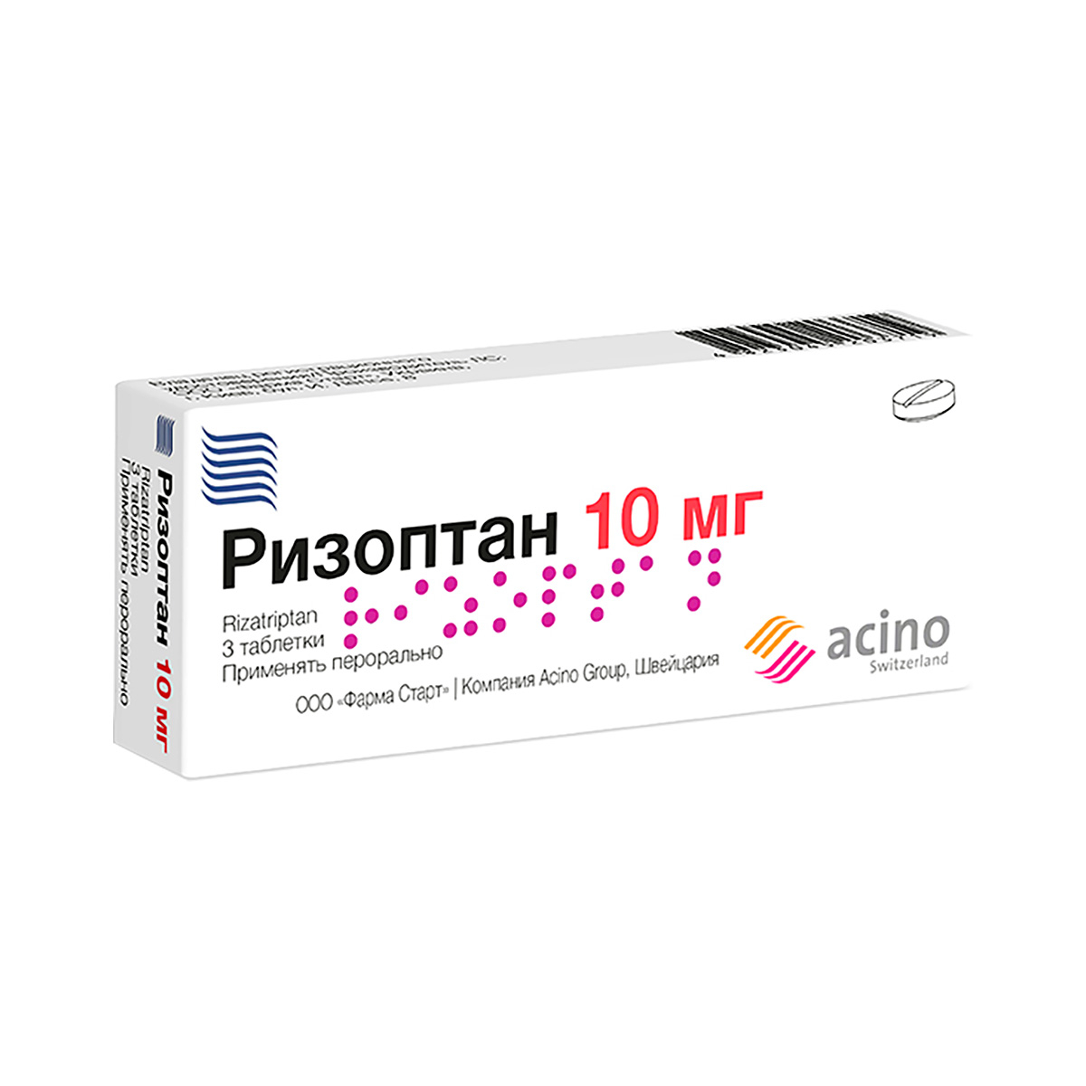активное вещество – ризатриптана бензоат 14,53 мг в пересчете на ризатриптан 10 мг;