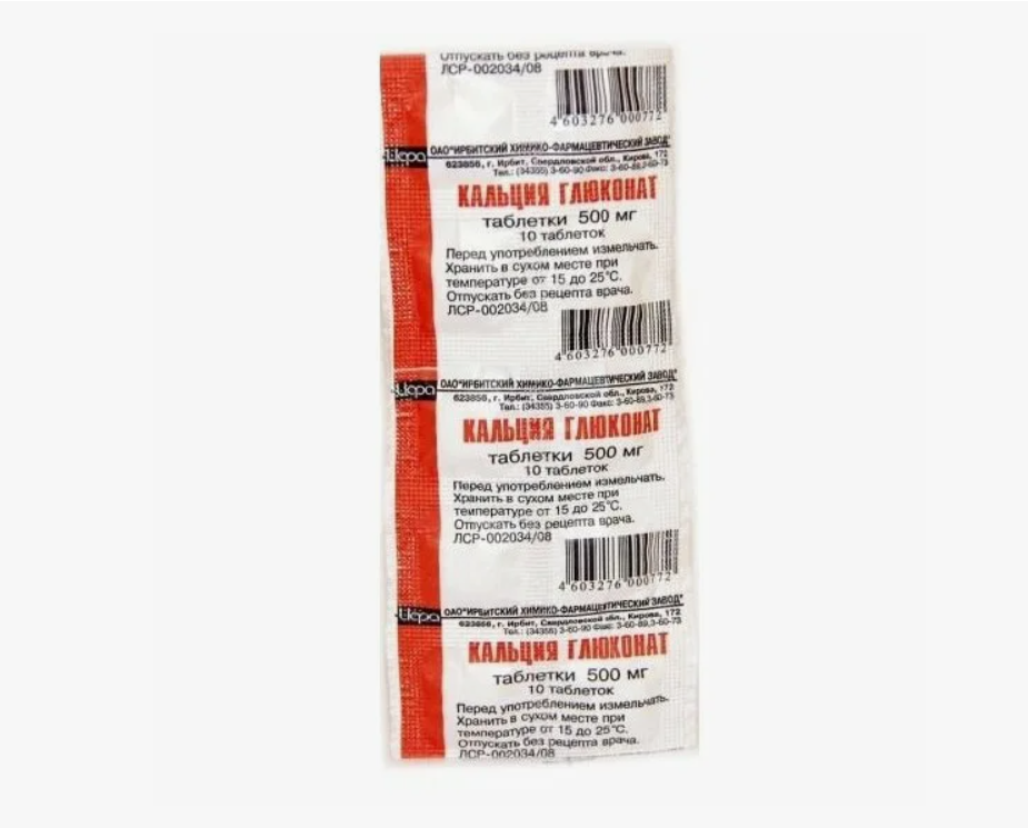 Активное вещество: кальция глюконат моногидрат - 500,0 мг