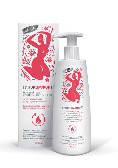 Синтетическое белье, гигиенические прокладки, частые депиляции и множество других факторов неизбежно влияют на состояние кожи и слизистой интимной зоны. Правильная гигиена часто позволяет избежать многих проблем. Вместо раздражения – комфорт и мягкость, вместо жжения – свежесть и чистота, вместо воспаления – баланс и защита. В составе успокаивающего геля ГИНОКОМФОРТ органично сочетаются 7 активных компонентов, направленных на поддержку интимного здоровье. Глицирризиновая кислота и пантенол в средстве для интимной гигиены успокаивают, смягчают кожу и слизистую, способствуя снятию раздражения и покраснения. Пироктоноламин и масло чайного дерева обладают выраженными противомикробными свойствами. Молочная кислота и пребиотический комплекс поддерживают физиологический уровень pH и нормализуют баланс микрофлоры женщины. Результат геля для интимной гигиены: деликатный уход за интимной зоной даже при воспалении, смягчение неприятных проявлений: раздражения, жжения, покраснения; поддержка баланса интимной флоры. Гель не содержит химических отдушек, красителей, сульфатов и иных раздражающих кожу компонентов. Средство подходит для ежедневного применения. ГИНОКОМФОРТ – деликатное решение интимных проблем.