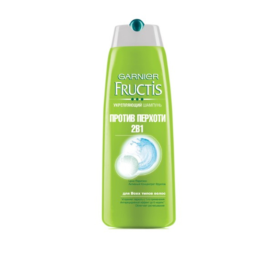 Шампунь для всех типов волос 2 в 1 Против перхоти Garnier Fructis действует с первого применения. В его состав входит цинк пиритион, который эффективно борется со всеми грибковыми бактериями. Обогащен фруктовыми экстрактами и ухаживающими маслами, чтобы заботиться о здоровье и красоте ваших локонов. Имеет легкую кремовую структуру и создает обильную ароматную пену. Активные компоненты устраняют перхоть и оказывают антирецидивное действие в течение 6 недель. Также борются с ломкостью и выпадением волос, укрепляют волосяную луковицу и насыщают кожу необходимыми витаминами.