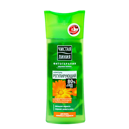 Шампунь “Регулирующий” для волос, склонных к жирности с экстрактами календулы, шалфея, тысячелистника, контролирует активность сальных желез и надолго сохраняет ощущение свежести и чистоты. Активные натуральные компоненты снижают излишнюю жирность кожи головы и волос, не пересушивая корни.