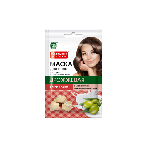Натуральная маска для волос "Дрожжевая с молоком и оливковое масло" Блеск и объем
