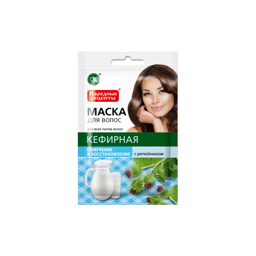 Натуральная маска для волос Кефирная с репейником Fito косметик, Смягчение и восстановление, 30мл