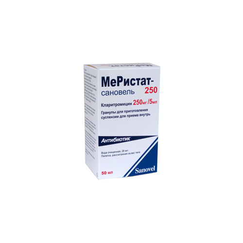 Поскольку возможно существование резистентности Streptococcus pneumoniae к макролидам, важно проводить тест на чувствительность при назначении МЕРИСТАТ-сановель 250 для лечения негоспитальной пневмонии. В случае госпитальной пневмонии кларитромицин нужно применять в комбинации с другими соответствующими антибиотиками.