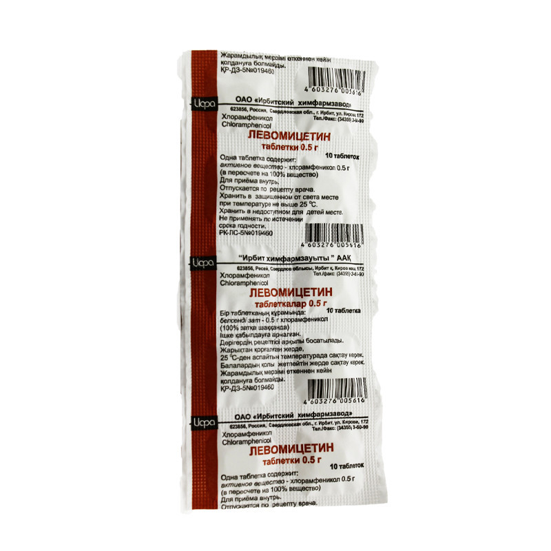 Действующее вещество: хлорамфеникол - 500,00 мг;