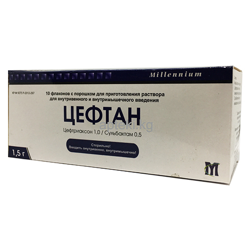 Цефтан является комбинацией цефтриаксона и сульбактама натрия. Цефтриаксон – полусинтетический антибиотик группы бета-лактамов, цефалоспорин III поколения; он оказывает бактерицидное действие, механизм которого связан с угнетением активности фермента транспептидазы, нарушением биосинтеза пептидогликана клеточной стенки микроорганизмов; обладает широким спектром действия. Активен в отношении грамположительных аэробов: Staphylococcus aureus (включая штаммы продуцирующие пенициллиназу), Staphylococcus epidermidis, Streptococcus pneumoniae, бета-гемолитических стрептококков группы А (S.pyogenes), стрептококков группы В (S.agalactiсae), группы Viridans, стрептококков неэнтерококковой группы D; грамотрицательных аэробов: E.coli, H. influenzae, H. parainfluenzae, Klebsiella spp. (включая K.pneumoniae), Morganella morganii, Neisseria gonorrhoeae (включая штаммы, продуцирующие пенициллиназу), Neisseria meningitidis, Proteus mirabilis, Proteus vulgaris, Providencia spp., Pseudomonas aeruginosa, Salmonella spp. (в т.ч. S.typhi), Serratia spp. (включая S.marcescens), Shigella spp., Yersinia spp. (в т.ч. Y.enterocolitica), Treponema pallidum; анаэробов: Bacteroides spp. (включая некоторые штаммы B.fragilis), Clostridium spp. (однако большинство штаммов C.difficile обладают резистентностью), Peptococcus spp., Peptostreptococcus spp., Fusobacterium spp.(за исключением F.mortiferum и F.varium). Препарат активен в отношении микроорганизмов, устойчивых к пенициллинам, цефалоспоринам первых поколений, аминогликозидам.