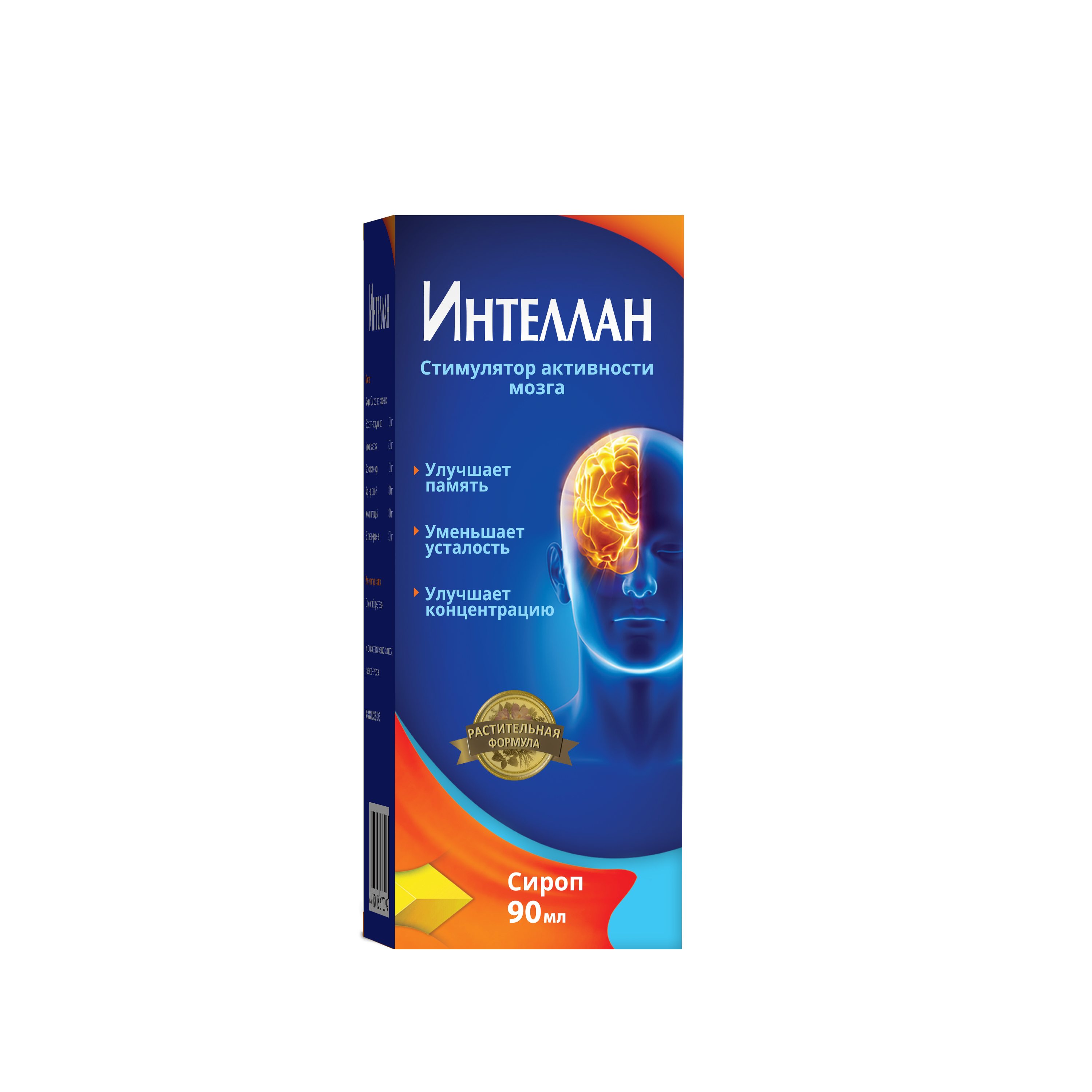 имеет стимулирующий эффект на обмен веществ коры головного мозга, стимулирует активность мозга и развитие памяти. Интеллан улучшает кровообращение в головном мозге, повышает обеспечение питанием нервных клеток, удаление продуктов метаболизма. Мягкий нейростимулирующий эффект снижает беспокойство и помогает при лечении подострых депрессивных состояний.