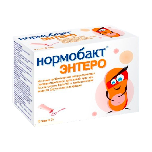 Нормобакт Энтеро, саше: по 3 г порошка в came. По 10 came B картонную пачку вместе с инструкцией по применению.
