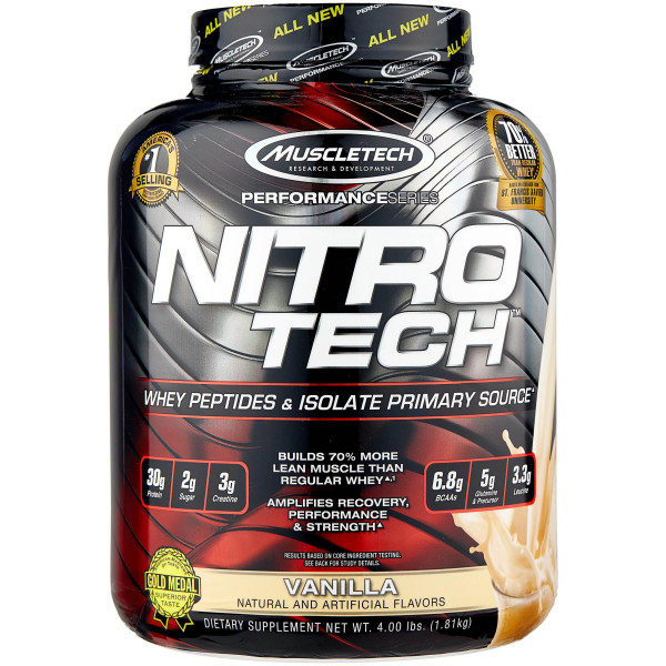 MuscleTech Nitro-Tech — это научно разработанная формула для наращивания сухой мышечной массы с сывороточным изолятом, которая предназначена для всех спортсменов, желающих увеличить мышечную массу, стать сильнее и добиться лучших результатов. Nitro-Tech содержит белки, основным источником которых являются сывороточные пептиды и изолят сывороточного белка — два наиболее чистых источника, которыми могут пользоваться спортсмены. Другие добавки с сывороточным протеином содержат лишь несколько грамм этих биодоступных и легко усваиваемых белков. Nitro-Tech также обогащен наиболее изученной формой креатина для еще большего увеличения объема и силы мышц.