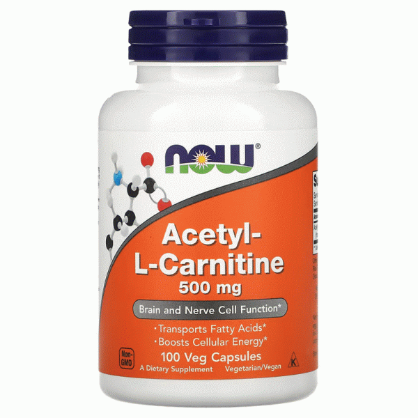 NOW Foods, Ацетил-L-карнитин, 500 мг, 100 растительных капсул