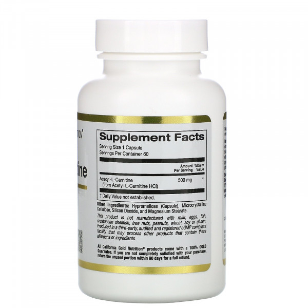 California Gold Nutrition, ацетил-L-карнитин, 500 мг, 60 растительных капсул