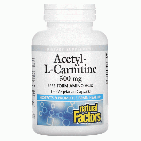 Natural Factors, ацетил L-карнитин, 500 мг, 120 вегетарианских капсул