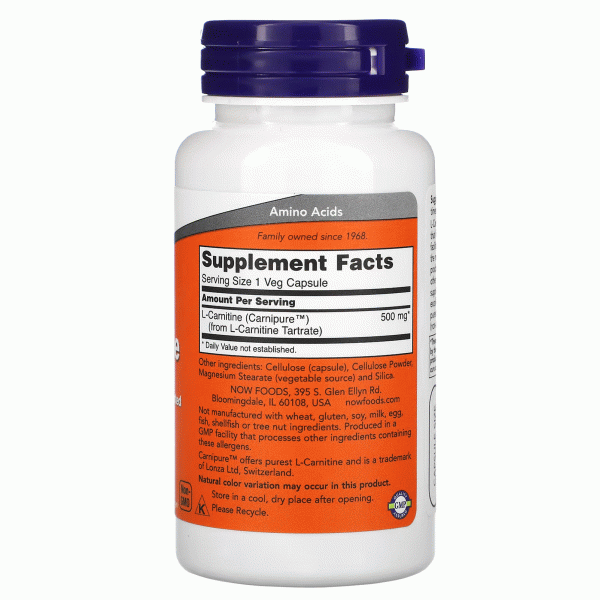 NOW Foods, L-карнитин, 500 мг, 60 растительных капсул