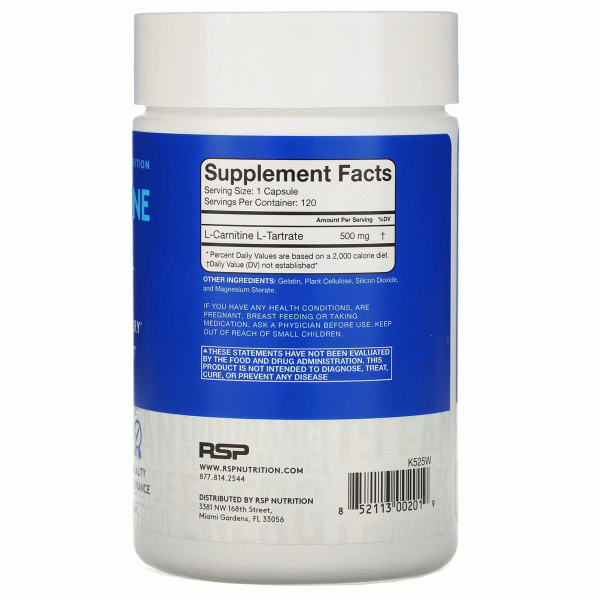 RSP Nutrition, L-карнитин, коррекция веса, 500 мг, 120 капсул