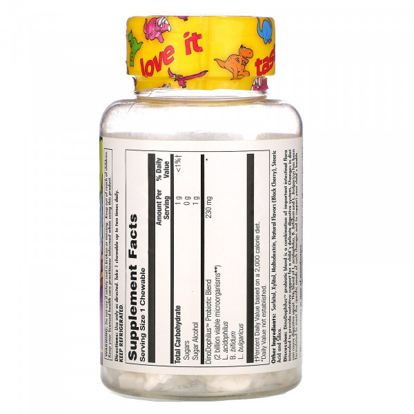 KAL, Dinosaurs, Dino-Dophilus, пробиотики со вкусом черешни, 60 жевательных таблеток