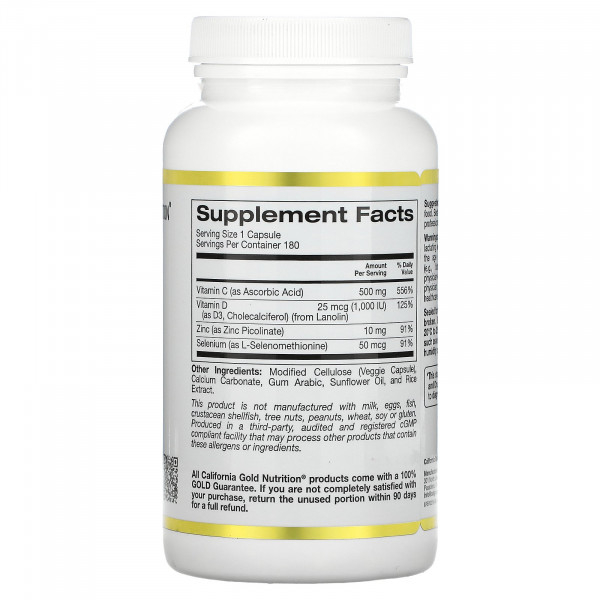 California Gold Nutrition, Immune 4, средство для укрепления иммунитета, 180 вегетарианских капсул