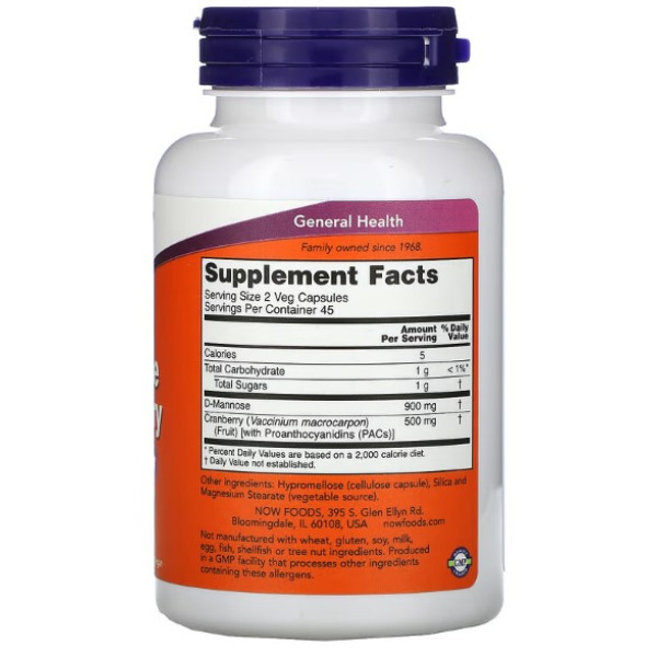 NOW Foods, клюква и манноза, 90 растительных капсул