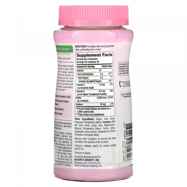 Nature's Bounty, Optimal Solutions, витамины для волос, кожи и ногтей, со вкусом клубники, 1250 мкг, 80 жевательных таблеток