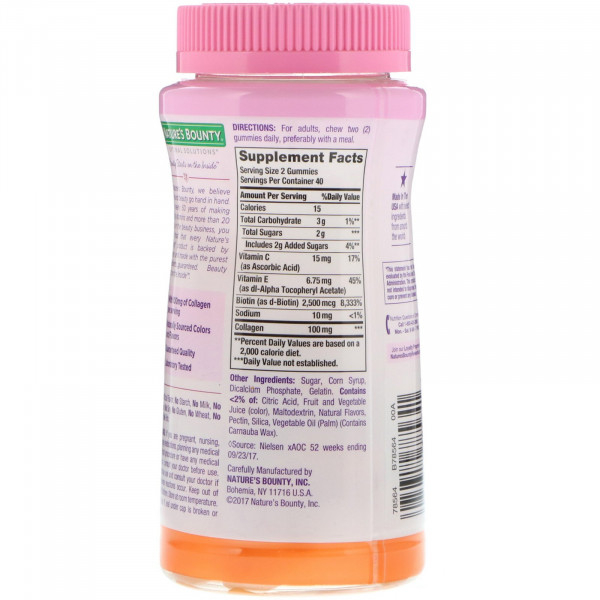 Nature's Bounty, Оптимальные решения для волос, кожи и ногтей; содержит биотин и коллаген; вкус тропических цитрусовых, 80 жевательных конфет