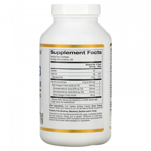 California Gold Nutrition, Омега-3, рыбий жир премиального качества, 240 рыбно-желатиновых капсул