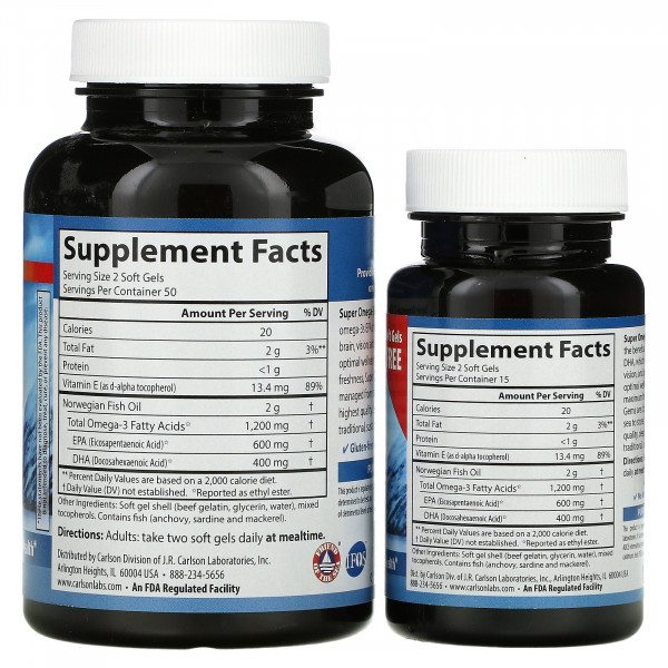 Carlson Labs, Wild Caught Super Omega-3 Gems, высокоэффективная омега-3 из морской рыбы, 600 мг, 100 плюс 30 капсул