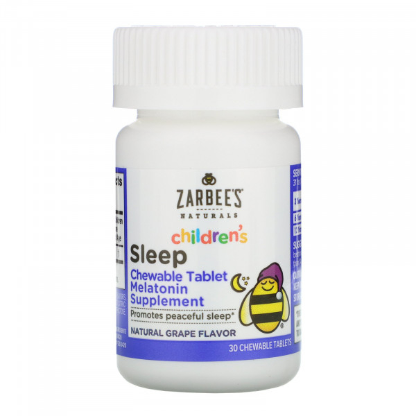 Zarbee's, Детское средство для сна с мелатонином, натуральный ароматизатор со вкусом винограда, для детей от 3 лет, 30 жевательных таблеток