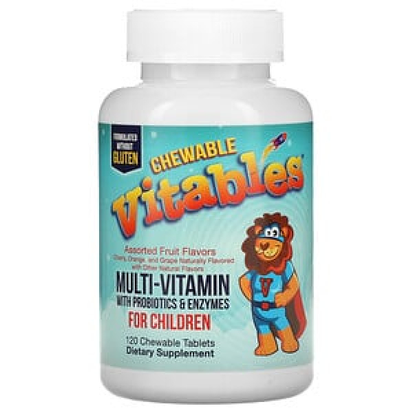 Vitables, жевательные мультивитамины с пробиотиками и ферментами, для детей, ассорти фруктовых вкусов, 120 вегетарианских таблеток