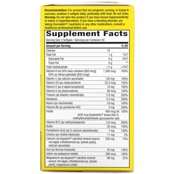Nature's Way, Alive! полноценный мультивитаминный комплекс премиального качества для беременных, 200 мг, 60 вегетарианских мягких таблеток