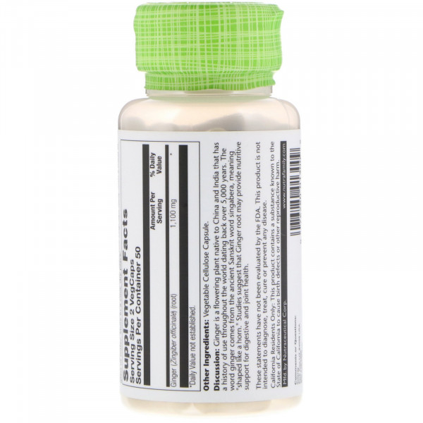 Solaray, имбирь, 550 мг, 100 вегетарианских капсул