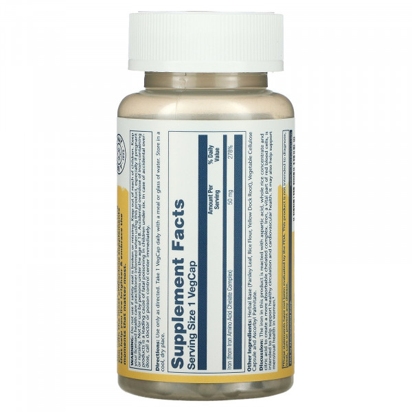 Solaray, Iron (Железо), 50 мг, 60 растительных капсул