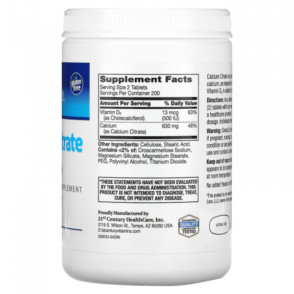 21st Century, Цитрат кальция + D максимум, 400 капсул