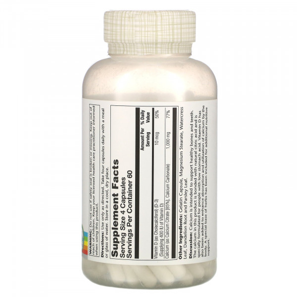 Solaray, цитрат кальция с витамином D3, 250 мг, 240 капсул