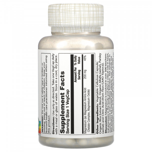 Solaray, Магний, 200 мг, 100 растительных капсул