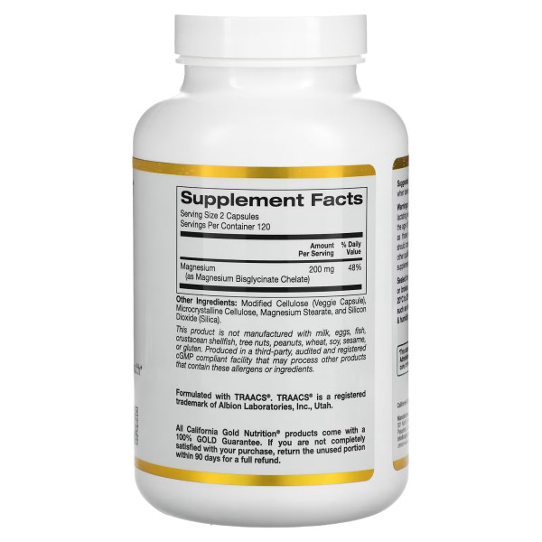 California Gold Nutrition, бисглицинат магния, 240 вегетарианских капсул