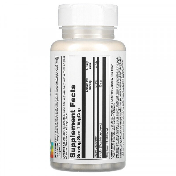 Solaray, Zinc Citrate with Pumpkin Seed, 50 mg, 60 VegCaps