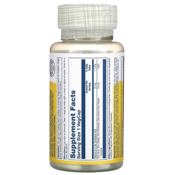 Solaray, Bio Zinc, 15 мг, 100 растительных капсул