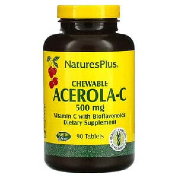 Nature's Plus, Ацерола-C в жевательной форме, витамин C с биофлавоноидами, 500 мг, 90 таблеток