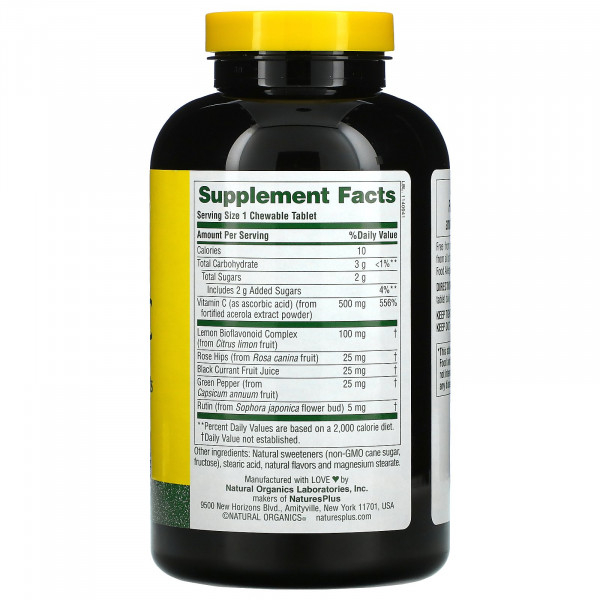 Nature's Plus, Chewable Acerola-C, Vitamin C with Bioflavonoids, 500 mg, 150 Tablets