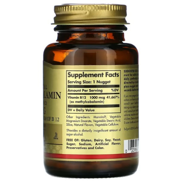 Solgar, сублингвальный метилкобаламин (витамин B12), 1000 мкг, 60 капсул