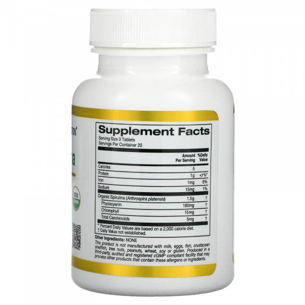 California Gold Nutrition, органическая спирулина, сертификат USDA Organic, 500 мг, 60 таблеток