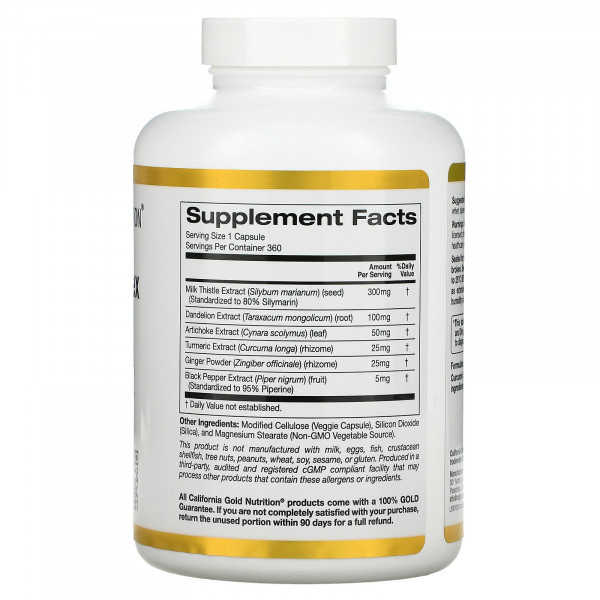 California Gold Nutrition, силимариновый комплекс, для здоровья печени, расторопша, куркумин, артишок, одуванчик, имбирь и черный перец, 360 растительных капсул