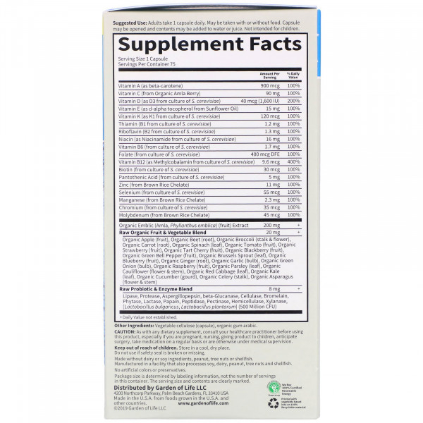 Garden of Life, Vitamin Code, RAW One, мультивитаминная добавка для мужчин (для приема 1 раз в день), 75 вегетарианских капсул
