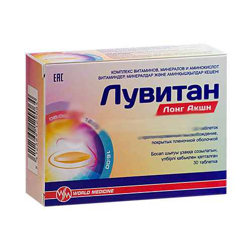 Лувитан Лонг Акшн представляет собой комплекс витаминов, минеральных веществ и незаменимых аминокислот, необходимых для нормального обмена веществ, роста и развития организма, защиты от болезней и вредных факторов внешней среды, надежною обеспечения всех жизненных функций, также повышает сопротивляемость организма к различным заболеваниям.