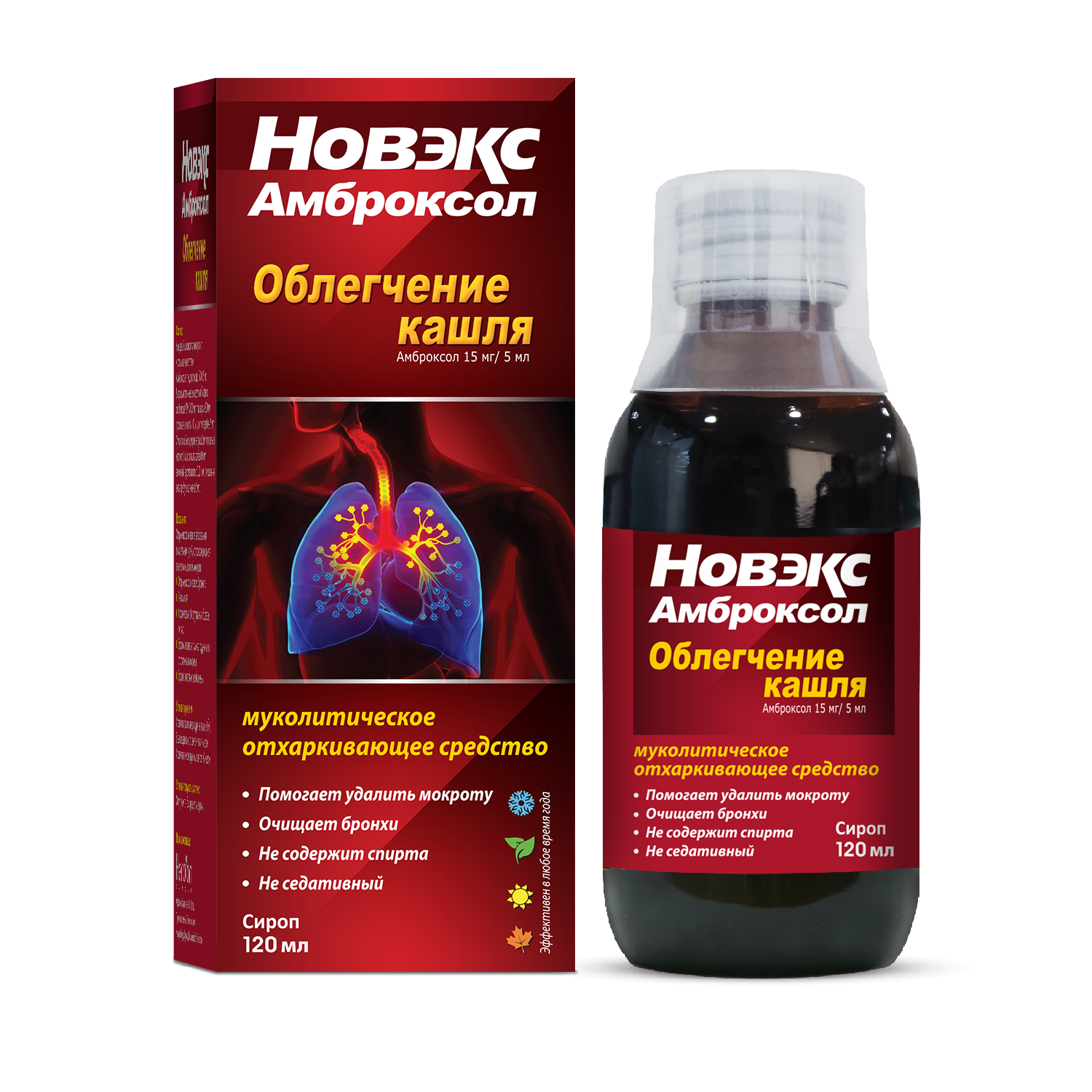 Новэкс Амброксол 15 мг/ 5 мл 120 мл сироп