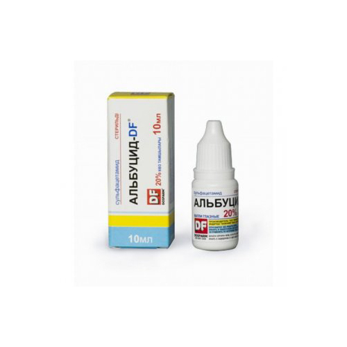 Альбуцид-DF®- сульфаниламидный антибактериальный препарат широкого спектра действия. Обладает бактериостатическим эффектом, активен в отношении грамположительных и грамотрицательных кокков, Escherichia coli, Shigella spp, Vibrio cholera, Clostridium perfringens, Bacillus anthracis, Corynebacterium diphtheriae, Yersinia pestis, Chlamydia spp, Actinomyces israelii, Toxoplasma gondii. Механизм действия препарата обусловлен конкурентным антагонизмом с парааминобензойной кислотой (ПАБК) и конкурентным угнетением дигидроптероатсинтетазы, что приводит к нарушению синтеза тетрагидрофолиевой кислоты, необходимой для синтеза пуриновых и пиримидиновых оснований. Вследствие этого нарушается синтез нуклеиновых кислот (ДНК и РНК) бактериальных клеток и тормозится их размножение.
